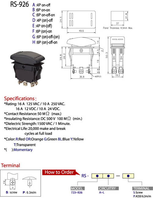 *Rating: 16 A 125 VAC/ 10A 250 VAC.