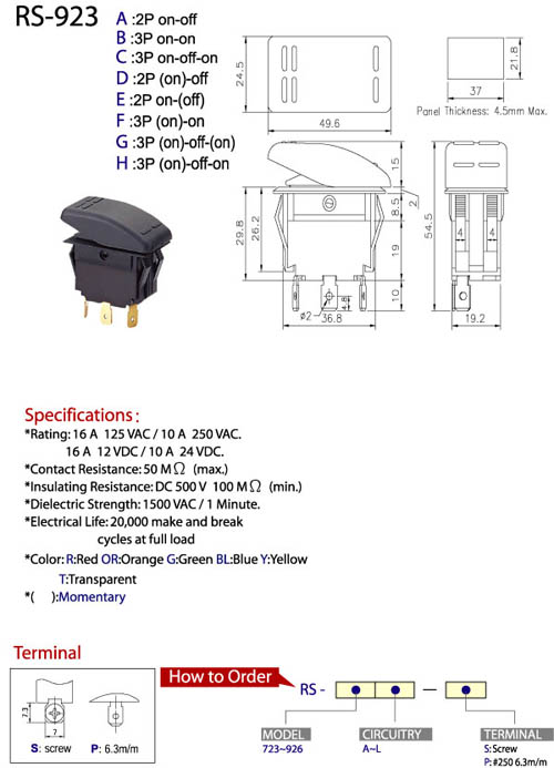 *Rating: 16 A 125 VAC/ 10A 250 VAC.