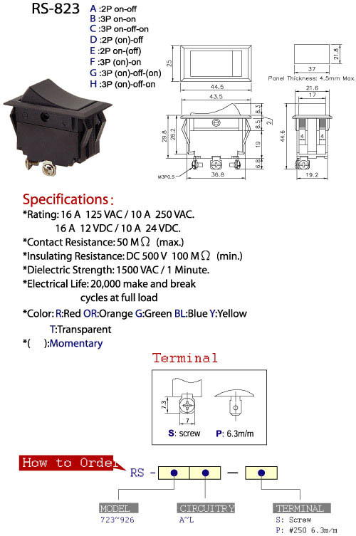 *Rating: 16 A 125 VAC/ 10A 250 VAC.