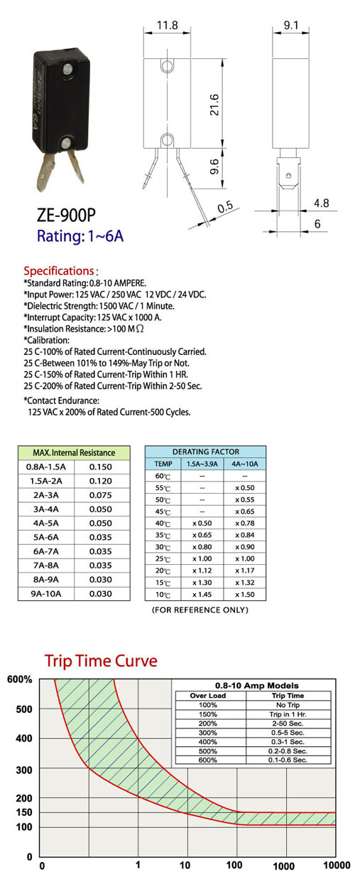 25°C-200% of Rated Current-Trip Within 2-50 Sec.