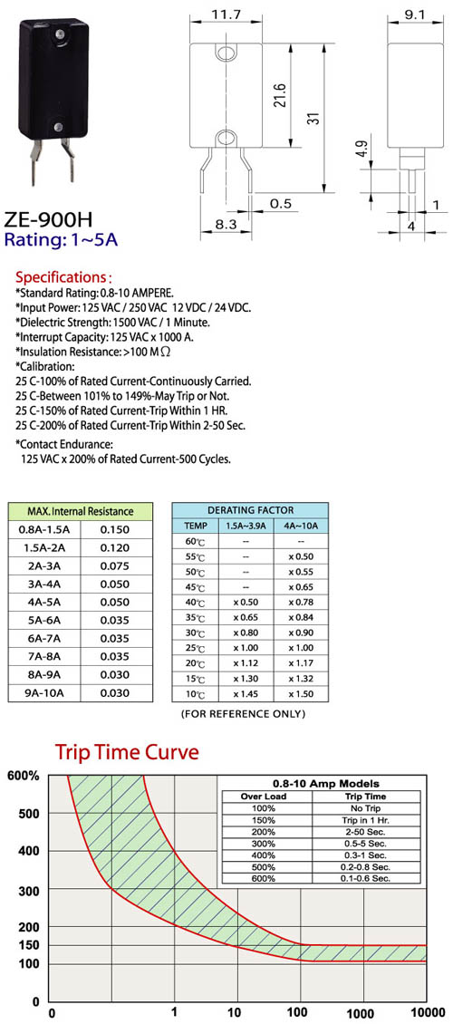 25°C-200% of Rated Current-Trip Within 2-50 Sec.