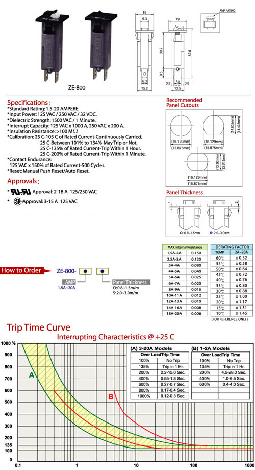 25°C-200% of Rated Current-Trip Within 1 Minute.