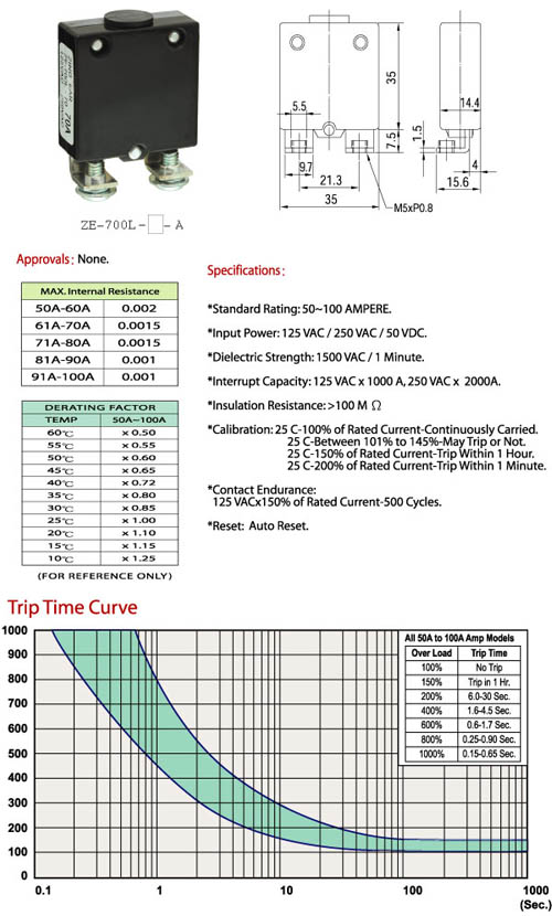 25°C-200% of Rated Current-Trip Within 1 Minute.
