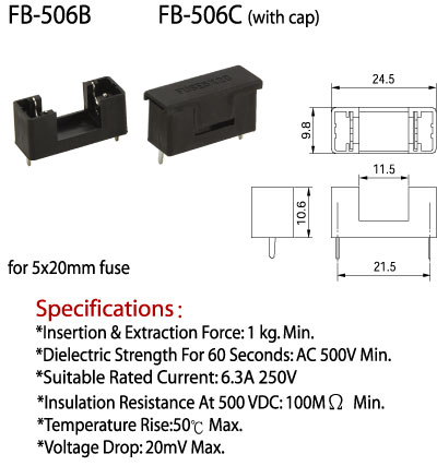 *Suitable Rated Current: 6.3A 250V.