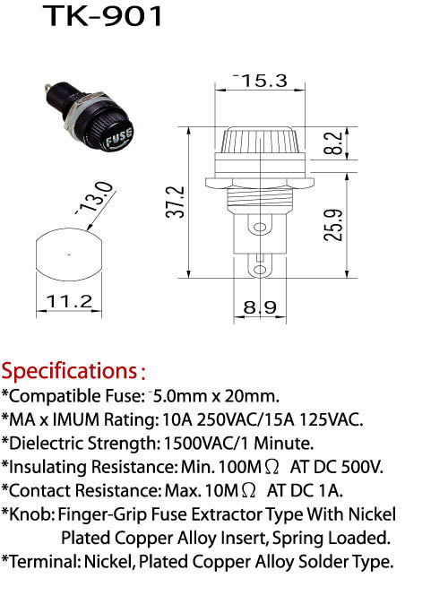 *Compatible Fuse: ⌀5.0mm x 20mm ⌀6.3mm x 32mm