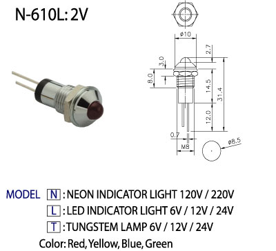 L : LED INDICATOR LIGHT 6V / 12V / 24V