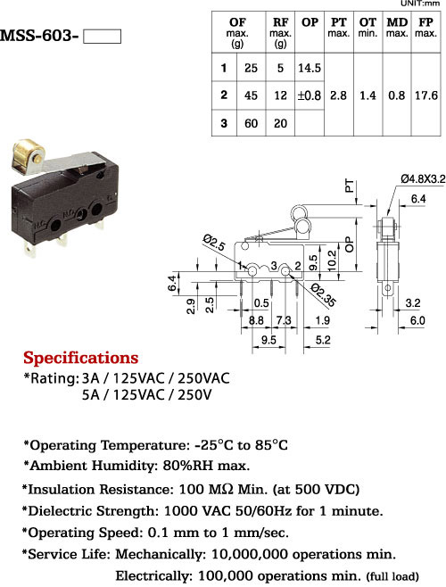 *Ratng: 3A / 125VAC / 250VAC