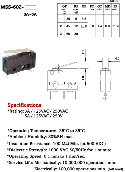 *Dielectric Strength: 1000 VAC 50/60Hz for 1 Minute.