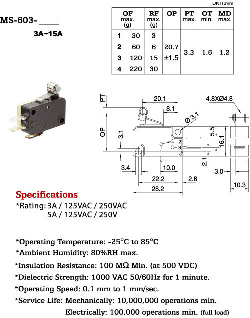 *Ratng: 3A / 125VAC / 250VAC