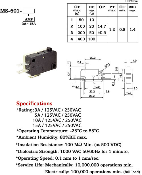 *Ratng: 3A / 125VAC / 250VAC