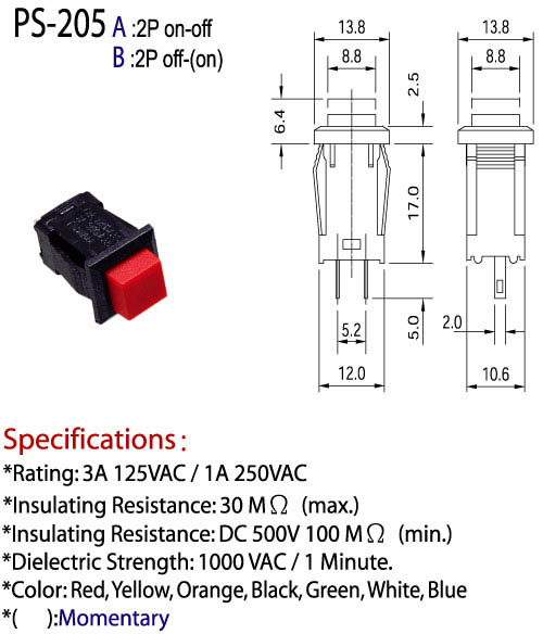 *Rating: 3A 125 VAC/ 1A 250 VAC.