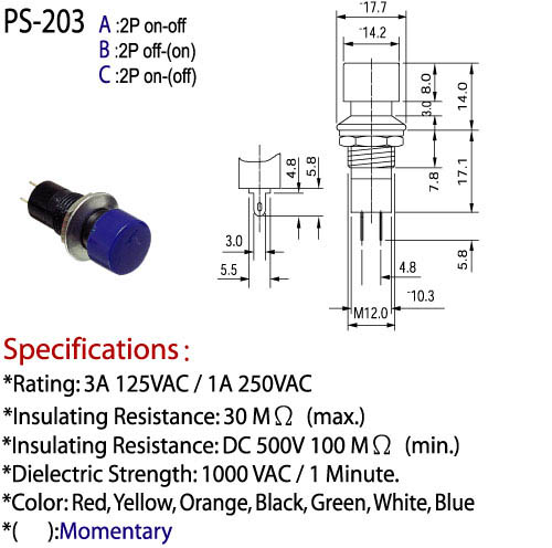 *Rating: 3A 125 VAC/ 1A 250 VAC.
