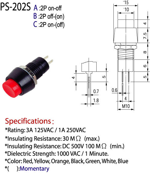 *Rating: 3A 125 VAC/ 1A 250 VAC.