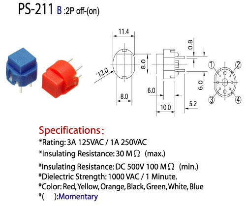 *Rating: 3A 125 VAC/ 1A 250 VAC.