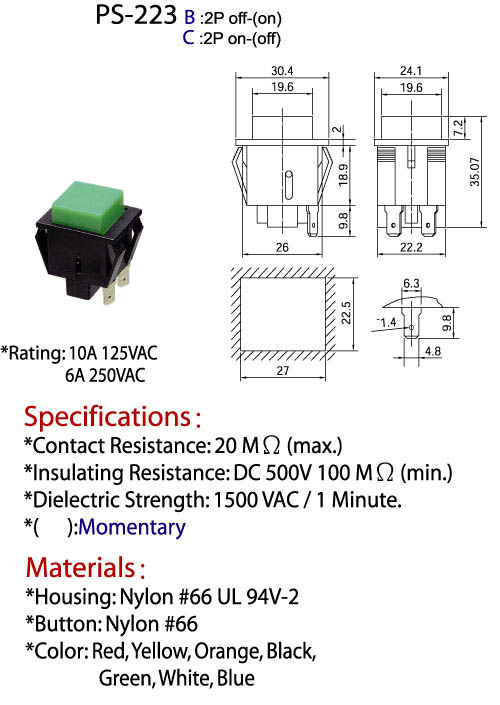 *Dielectric Strength: 1500 VAC/1 Minute.