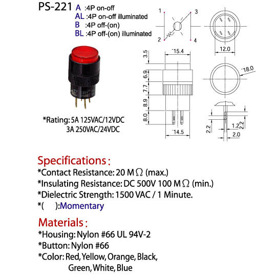 *Dielectric Strength: 1500 VAC/1 Minute.