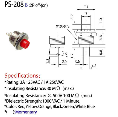 *Rating: 3A 125 VAC/ 1A 250 VAC.