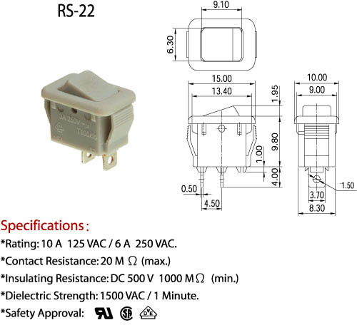 *Rating: 10 A 125 VAC/ 6A 250 VAC.
