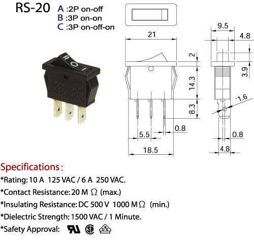 *Rating: 10 A 125 VAC/ 6A 250 VAC.