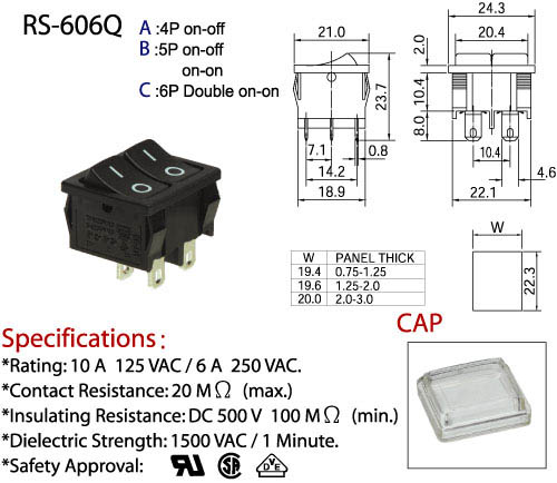 *Rating: 10 A 125 VAC/ 6A 250 VAC.