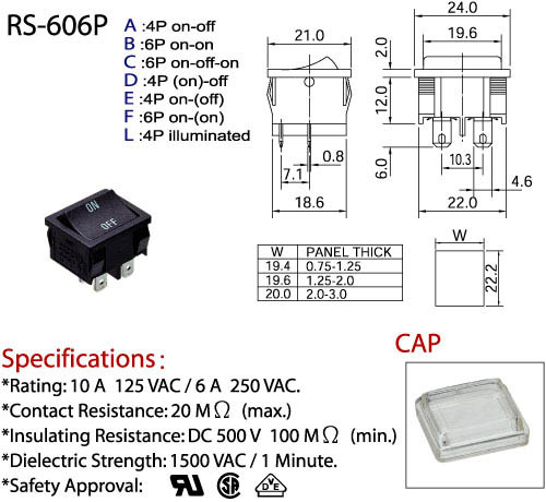 *Rating: 10 A 125 VAC/ 6A 250 VAC.