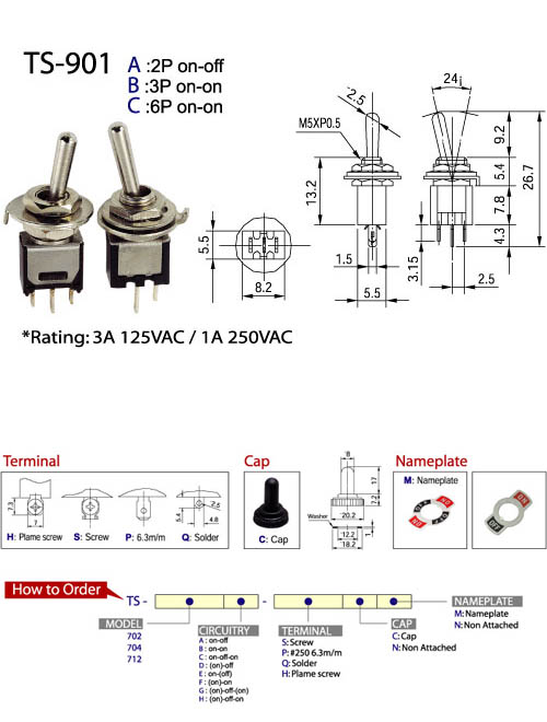 *Rating: 6 A 125 VAC/ 3A 250 VAC.
